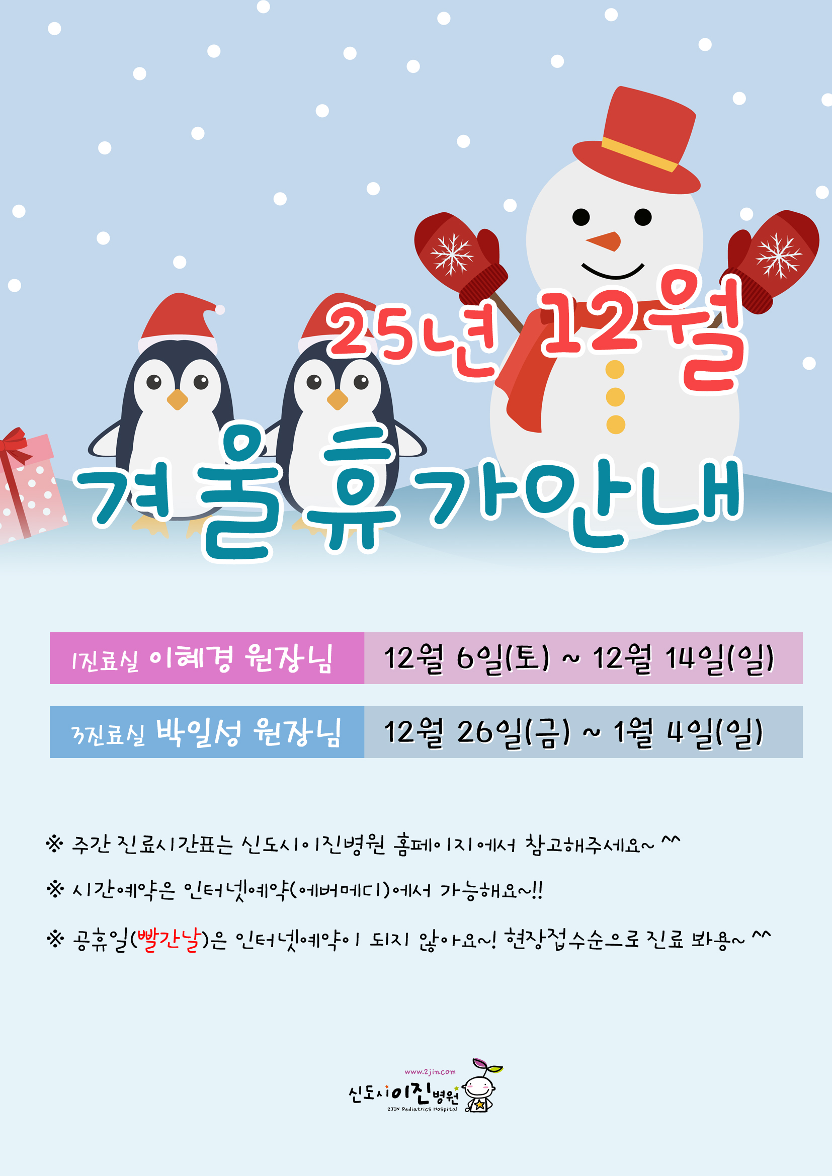 신도시이진병원 25년도 원장단 겨울휴가 일정입니다.